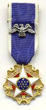| السبب | "An especially meritorious contribution to the security or national interests of the United States, world peace, cultural or other significant public or private endeavors."[1] |