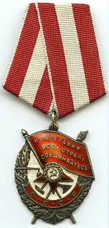 - "معلومات عن وسام الراية الحمراء على موقع bigenc.ru". bigenc.ru. مؤرشف من الأصل في 08 ديسمبر 2019. الوسيط