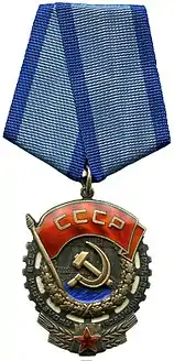 - "معلومات عن وسام الراية الحمراء من حزب العمال على موقع bigenc.ru". bigenc.ru. مؤرشف من الأصل في 16 ديسمبر 2019. الوسيط