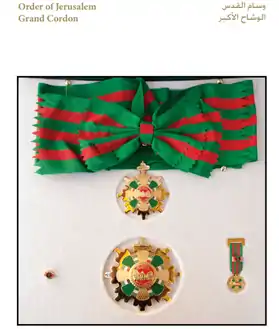 | وسام القدس من رتبة "الوشاح الأكبر" | وسام القدس من رتبة "النجمة الكبرى" |