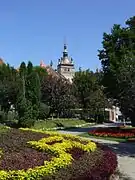 مَنظر بُرج السَّاعة من الحَديقَة العامّة.
