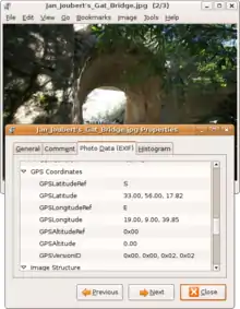معلومات المكان الجغرافي مخزنة في صورة يعرضها برنامج gthumb