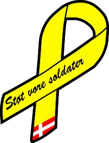 في الدنمارك أصبح الشريط الأصفر أو أكثر الرسمية أقل (ولكن ليس مباشرة أيد رسميا من قبل قوات البلدان المسلحة) رمزا لتقديم الدعم للقوات في البعثات. في السويد، (Fredsbaskrarn) فريدسباسكرارن [5] و ( Stiftelsen Jesper Lindbloms Minne ) ستيفتيلسين جيسبر ليندبلومز مين [6] يقومون بالترويج لها كرمز لدعم القوات.
