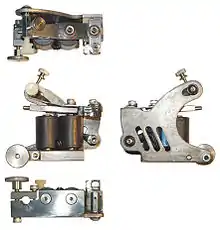 إن آلة الوشم الكهربائية الحديثة بعيدة عن تلك الآلة التي اخترعها صامويل أورايلي عام 1890. كانت آلة أورايلي مستندة على التكنولوجيا الدوارة لجهاز النقش الكهربائي الذي اخترعه توماس إديسون. آلات الوشم الحديثة تستخدم الوشائع الكهرومغناطيسية. أول آلة تعتمد على الوشيعة تم اختراعها من قبل "توماس رايلي" في لندن عام 1891 باستخدام وشيعة وحيدة. في حين تم اختراع أول آلة تعتمد على الوشيعة المزدوجة من قبل بريطاني آخر وهو "ألفريد تشارلز ساوث" في لندن عام 1899.