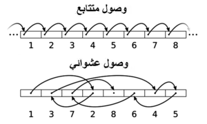 في بنى البيانات الوصول المتتابع لا تستطيع الدخول على البيانات إلا بشكل متتابع . و أقرب استخدام لها هي القوائم المتصلة .