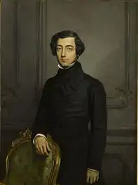 كَتبَ ألكسيس دو توكفيل عن الانتماء القومي كشرط أساسي لنجاح الديمقراطية، بما أنه أحد مصادر التضامن الاجتماعي.[56] مفهوم ما عن الهوية القومية ضروري لسلامة العملية الديمقراطية. ترتكز الديمقراطية على هوية متماسكة تستند عليها الأمة، ولا وجود لديمقراطية بدونها؛ لأن الديمقراطية وحدها لاتقدم قراءة تاريخية أو رؤية مستقبلية تحافظ على التماسك المجتمعي. فالأمم التي لاتقدم تعريفًا أساسيًا لأولئك المستفيدين من ثمار المواطنة في كيانها السياسي، وتفشل في توفير بدائل للعلاقات الإقطاعية، هي الأقل احتمالًا لتأسيس ديمقراطية.[57]