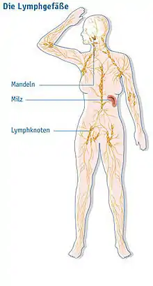 مسارات الأوعية اللمفية في جسم الإنسان.