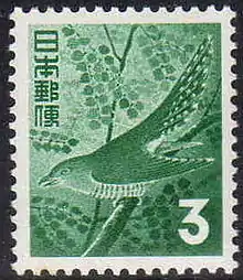 الوقواق رمادي الرأس على طابع بريدي من اليابان عام 1954