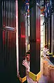 قضبان التحكم المصنوعة من الكادميوم تشغل أماكن بينية بين قضبان الوقود، وكل وحدة وقود مزودة بعدد منها، يمكن رفعها أو خفضها في قلب المفاعل وتضبط معدل سير التفاعل تلقائيا. كما يمكن بواسطتها إيقاف التفاعل كليا، وذلك بدفع جميع قضبان التحكم كلية في قلب المفاعل بين وحدات الوقود، فيمتص الكادميوم جميع النيوترونات ويتوقف التفاعل النووي.