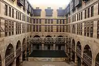 تتكون الوكالة من فناء مكشوف مستطيل التخطيط، تحيط به من جميع جوانبه قاعات على خمسة طوابق. واجهتها الرئيسية تقع في الجهة الجنوبية وبها المدخل الرئيسي للوكالة. يتم الوصول إلى الطابق الأول عن طريق سلم حجري. يوجد في الطابق الأول حوالي 30 حاملا، وفي الطوابق الثلاثة العلوية يوجد 29 منزلا. يعتقد أن حوامل الطابقين الأرضي والأول كانت تستخدم مخازن للتجار، كما يعتقد أن أغلب قاصدي هذه الوكالة كانوا أيضا من التجار.
