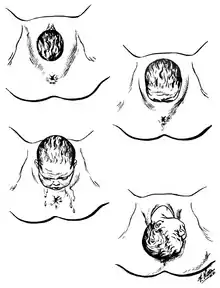 |CitationClass=تم تجاهله (مساعدة) - Usatine, R.P. (developer). "Labor & Delivery". Maternity Guide (for medical residents). Family & Community Medicine Dept, University of Texas Health Science Center at San Antonio. مؤرشف من الأصل في 20 مايو 2018. اطلع عليه بتاريخ 18 أغسطس 2013. الوسيط