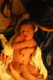 ![]() طفل رضيع بعد ساعتين من الولادة | |