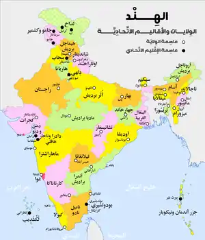 | الاسم | أيزو 3166-2:IN[1] | السكان | اللغات الرسمية |