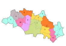 - عاصمة الولاية : أم البواقي وتنقسم إداريا إلى 12 دائرة و 29 بلدية.