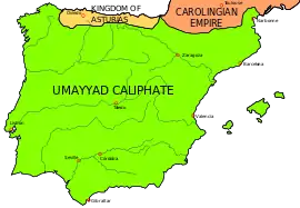 بعد الفتح الإسلامي لإسبانيا، أصبحت المملكة القوطية القديمة ولاية أموية، أي أن الأراضي التي حكمها ولاة الأندلس اعتمدوا على الخلافة في دمشق ولكن خضعوا للمركز السياسي لولاية المغرب العربي، والتي مقرها في القيروان.[1]