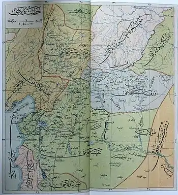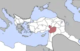 ولاية حلب في خارطة الولايات العثمانية في المشرق العربي وشرق الأناضول