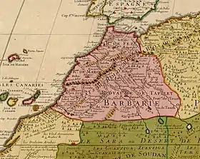 ![]() خريطة تظهر ولايات الإمبراطورية الشريفة (المغرب) سنة 1707. | ||||||