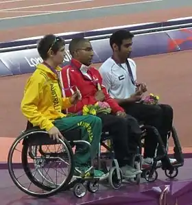 - كما حقق رقم قياسي بارالمبي و هو 15.95 عند فوزه بالميدالية الذهبية إختصاص 100 متر, ليكون بذلك صاحب الرقمين القياسيين العالمي و البارالمبي.