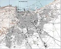 ![]() خريطة تظهر فيها تقسيمات أحياء وهران وشوارعها الأساسية | |