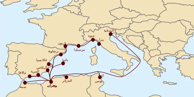 | إحداثيات: 35°41′49″N 0°37′59″W [29] | |