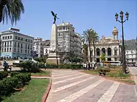 ![]() من الأسفل إلى الأعلى: الواجهة البحرية، مسجد الباي، ساحة أول نوفمبر، قلعة سانتا كروز، تمثال الأسدين. | |