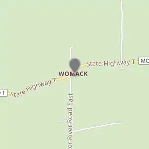 - "صفحة ووماك (ميزوري) في GeoNames ID". GeoNames ID. اطلع عليه بتاريخ 7 مارس 2021. الوسيط