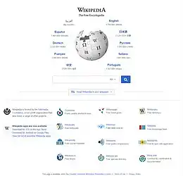 ويكيبيديا Wikipedia ![]() ![]() صورة شاشة لبوابة ويكيبيديا المتعددة اللغات كما تظهر اثناء التصفح في الدول العربية