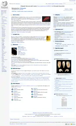 ويكيبيديا الإيطالية ![]() ![]() صورة شاشة للصفحة الرئيسية لويكيبيديا الإيطالية