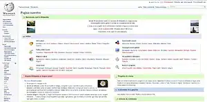صورة من البوابة الرئيسية لويكبيديا تظهر الإصدارات اللغوية المختلفة مرتبة حسب عدد المقالات.