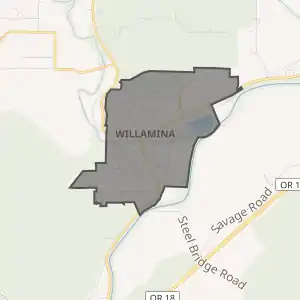 ويلامينا (بالإنجليزية: Willamina, Oregon) هي مدينة تقع في مقاطعة يامهيل، أوريغون, مقاطعة بولك، أوريغون بولاية أوريغون في الولايات المتحدة. تبلغ مساحة هذه المدينة 2.49 (كم²)، وترتفع عن سطح البحر 68.6 م، بلغ عدد سكانها 2025 نسمة في عام 2010 حسب إحصاء مكتب تعداد الولايات المتحدة.[5]