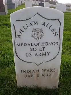 - "Medal of Honor recipients: Indian Wars Period - William Allen". مركز التاريخ العسكري لجيش الولايات المتحدة. July 16, 2007. مؤرشف من الأصل في 2 أبريل 2019. اطلع عليه بتاريخ أكتوبر 2020. الوسيط