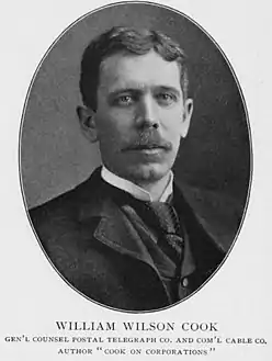 ويليام دبليو. كوك (بالإنجليزية: William W. Cook) هو محامي أمريكي، ولد في 1858 في هيلزدال في الولايات المتحدة، وتوفي في 4 يونيو 1930 في بورت تشيستير في الولايات المتحدة.[4][5][6]