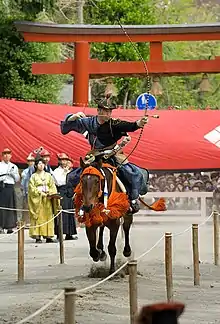 |CitationClass=تم تجاهله (مساعدة); تحقق من التاريخ في:|تاريخ أرشيف=(مساعدة) - Yabusame, l'arc des dieux(流鏑馬), article de Guide Japon نسخة محفوظة 01 يوليو 2014 على موقع واي باك مشين.