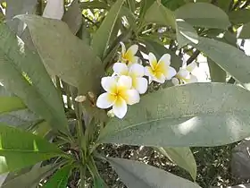 ياسمين هندي أبيض (الاسم العلمي: Plumeria alba)، هو نبات شجيري نفضية أو متساقطة الأوراق وقد لا تساقط أوراقها ينتمي إلى دفلية (فصيلة: Apocynaceae) ، ويتم تصنيفة عادة ضمن مجموعة نباتات الزينة والزهور وهو واحد من اصل اربعة انواع تابعين لجنس بلوميريا