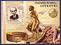 طابع ياباني يظهر كاواباتا عند حصوله على جائزة نوبل