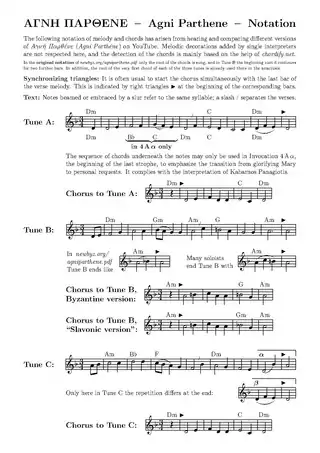 - Melody based on the notation due to Nancy Chalker Takis (2006) نسخة محفوظة 2021-01-03 على موقع واي باك مشين.