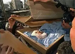 وقد نقلت الجثة إلى مستشفى الشفاء وتوافد عدد من قادة حركة حماس لمعاينة الجثة، ومنهم الصحفي فايد أبو شمالة الذي يعرف المهندس منذ أيام الدراسة الجامعية. وقال فايد بأن الجهة اليمنى من وجه المهندس (من أذنه وحتى منتصف وجهه) كان مهشماً تماماً، وكذلك يده اليمنى، بينما لم يتأثر بقية جسمه إطلاقاً بالانفجار.[58] هذا وقد خرج في تشيع جثمانه 100 الف فلسطيني في غزة وحدها.[11]
