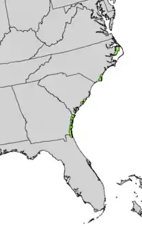موطنه ساحل جنوب غرب أمريكا الشمالية، حيث ينمو في الكثبان الرملية على طول ساحل كاليفورنيا والجزر الحاجزة (بالإنجليزية: Barrier islands) في الولايات المتحدة والمكسيك.