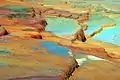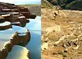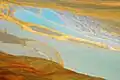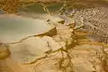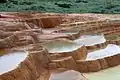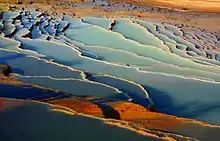 ان المياه المترسبة لهذين الينبوعين وفي طريق تطويه من أعلى الجبل إلى أسفله طوال آلاف السنين، خلقت شلالاً على شكل السلالم أوجد بدوره عشرات الأحواض الصغيرة التي تتنوع ألوانها بين البرتقالي والأصفر والأحمر والذهب وعلى مقاييس مختلفة.[8]