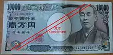 ![]() أوراق 100, 500, 1000, 10000 ين ياباني القديمة (الوجه) |