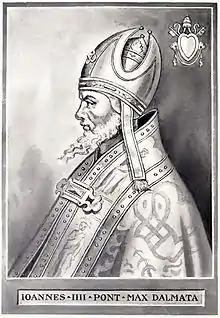 "Pope John IV". الموسوعة الكاثوليكية. نيويورك: شركة روبرت أبيلتون. 1913. الوسيط |CitationClass=تم تجاهله (مساعدة)
