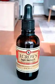 - "Strong Iodine Solution". The American Society of Health-System Pharmacists. مؤرشف من الأصل في 13 يناير 2017. اطلع عليه بتاريخ 08 يناير 2017. الوسيط