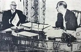 ![]() أحمد حسن البكر (يمين) مع يوسف يعقوب مسكوني (يسار) في 16 كانون الأول / ديسمبر 1968 | |