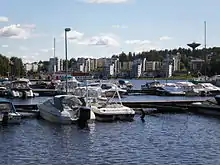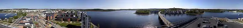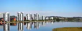 بحيرة يوفاسيارفي. البناء الكبير في المنتصف هو برج إنوفا.