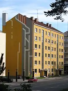 يأهل ضواحي المدينة بصورة رئيسية شقق الطلبة وبيوت مستقلة للعائلات. من أهم المباني مبنى ساوناتسالو المجمع متعدد الوظائف الذي صممه آلتو والواقع في ساوناتسالو خارج وسط المدينة، ومبنى موراتسالو.