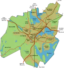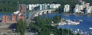 شارع غوميروكسنكاتو، يتضح من سفح تلال هاريو ؛ في الخلفية يمكن رؤية جزء من بحيرة يوفاسيارفي فضلا عن جزء من المنطقة أينولانرنتا السكنية الجديدة في الضفة المقابلة.