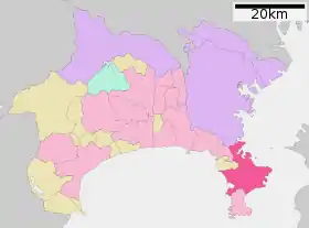 | أتسوغي | أياسه | تشيغاساكي | إبينا | فوجيساوا | هادانو | هيراتسوكا | إسيهارا | كاماكورا | كاواساكي | مينامي أشيغارا | ميورا | أوداوارا | ساغاميهارا | ياماتو | يوكوهاما (العاصمة) | يوكوسوكا | زاما | زوشي | |||