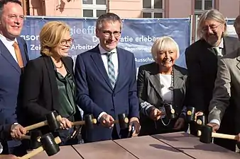 يوليا كلوكنر (على اليسار) أثناء وضع حجر الأساس للمبنى الجديد لبرلمان ولاية رايلاند بفالز