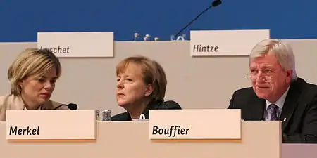 | نائبة زعيم حزب الاتحاد الديمقراطي المسيحي مع أرمين لاشيت وأورسولا فون دير لاين وفولكر بوفيير وتوماس شتروبل | |