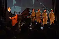 ![]() منصة مسرح استعداداً لمراسم يوم الذكرى السنوي في رمات هكوفيش، إسرائيل | |